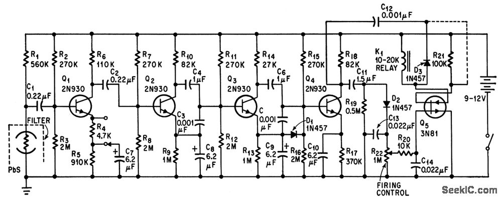 Output relay resets parking meter to zero when lead sulfide detector senses heat of engine when parked car is started.-W. E. Osborne, Farewell To Free Time On City Parking Meters, Electronics, 37:32, p 72-74.