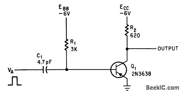 Input voltage, supply voltage EBB, and R1.C1 determine delay time for digital pulses.-R.A. Karlin, One-Transistor Multi Delays Digital Pulses, Electronics, 38:17, p 85-86.