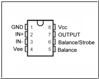 Out put from the IR module is given to the inverting input of IC1. LM311 is a precision voltage comparator . It looks like the common Op Amps like LM741, CA3130,CA 3140,TL071 etc.But its pin connections and output are different from other Op Amps.Pin 2 Non invertingPin3 InvertingPin 1 GroundPin8 VccPin7 Current sinking Output