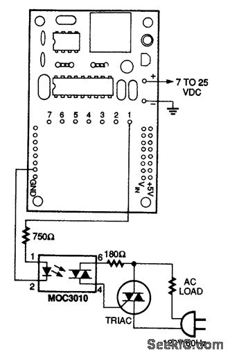 This circuit can be used to interface a triac to the IR remote control ac loads.