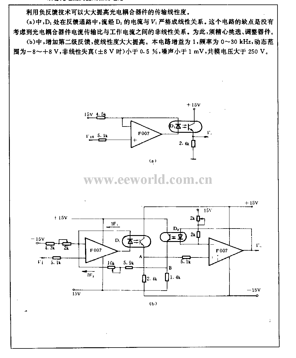 Using negative feedback technology can improve the transport linearity of photoelectric isolator device.