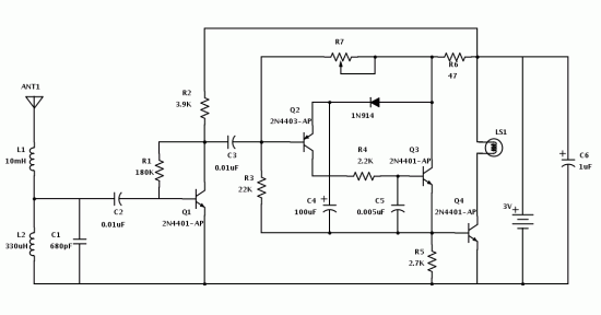 It picks up and amplifies signals in the 300 kHz range, where lightning makes a lot of noise that can be picked up with a radio. The antenna and receiver are tuned to 300 kHz, with the receiver’s output connected to an amplifier that drives the lamp flashing circuitry, alerting you to lightning in the area.Use the potentiometer to reduce the sensitivity to noise and still be able to detect lightning strikes. In addition to lightning, this will also respond to noise from motors inside appliances like refrigerators, washers, and air-conditioners. Another easy way to affect the sensitivity is to take off the antenna, or lengthen it depending on the conditions. To get some confirmation while tuning the detector, you can tune an AM radio to the bottom the of the dial as well.