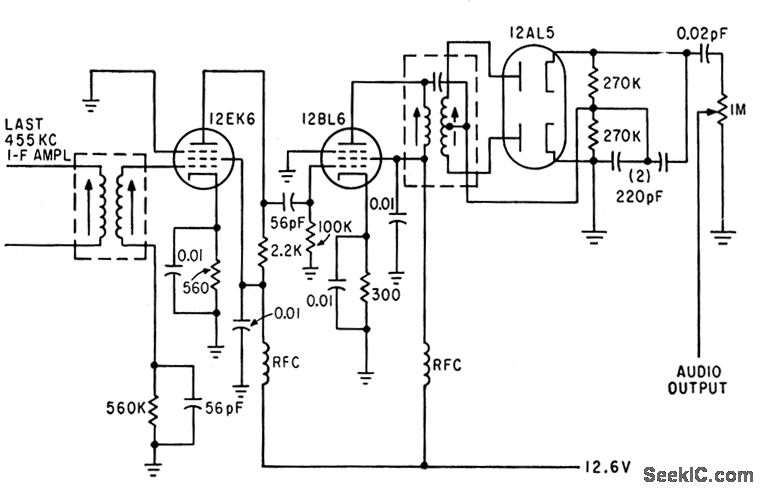 Two limiter stages in cascade precede Foster-Seely discriminator.-C. Gonzalez and R. J. Nelson, Design of Mobile Receivers with Low-Plate-Potential lubes, Electronics, 33:34, p 62-65.