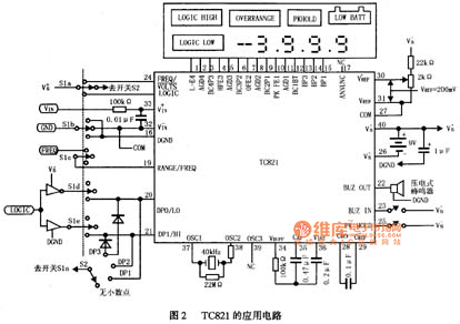 3.1 TC821 main parameters are as follows: ● Supply voltage (V + S connected to the ground) is 15V; ● power consumption is 800mW; ● Operating temperature range: -40 ~ +85 ℃ (D type). 3.2 TC821 main characteristics are as follows: ● The output is displayed as ± 000 when input is zero; ● flip error is ± 1 digit; ● nonlinearity is ± 1 word; ● common mode rejection ratio is 50μV / V; ● noise voltage is 15μV (typical); ● maximum scale factor temperature coefficient is 5ppm / ℃; ● operating current is 1 ~ 1.5mA; ● The maximum adding of input logic low level is 1.5V; ● The minimum decreasing of input logic high level is 1.5V.
