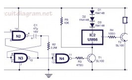 Here the circuit diagram of musical bell with touch switch and timer. This circuit is designed around CMOS IC CD4011 which work as the delay timer and IC UM66 which is well-known musical sound generator. When touch plates are bridged (touched) by hand for a moment, the circuit will start to produce music sound. Just after a short period (few seconds), the musical sound from this circuit will automatically stop.