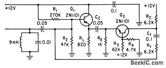 Increases circuit Q by factor of 4 or more in tuned audio circuits by reducing circuit losses.-W. P, Delaney, New Way to Multiply Q with Transistors, Electronics, 35:28, p48-49.