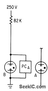 Cadmium selenide photoconductor PC and Ne2H neon lamps give low-speed inverter action for logic circuits at low cost. Neon B is on when there is no input. When neon A provides input, PC turns neon B off.-J. L. Patterson, Will Neon Photoconductors Replace Relays in Low-Speed Logic?, Electronics, 36:18, p 46-49.