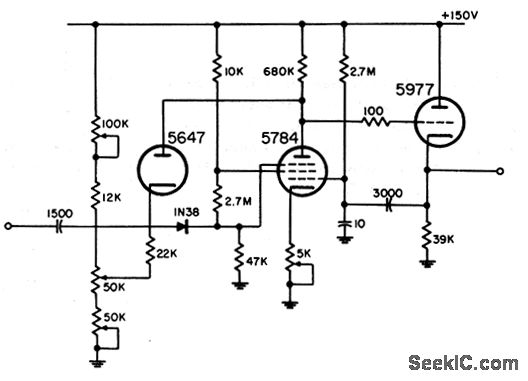 Used to delay beginning of crt sweep for expanded display. Range is 5 to 175 miles. Trailing edge of screen waveform is differentiated and used to trigger blocking oscillator through trigger amplifier.-NBS, Handbook Preferred Circuits Navy Aeronautical Electronic Equipment, Vol. 1, Electron Tube Circuits, 1963, p N9-3.