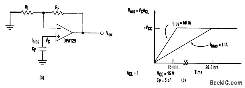 All amplifiers must have a dc path for input-bias current to return to ground (a). Without this path, an amplifier will eventually drift to the output rail (b).