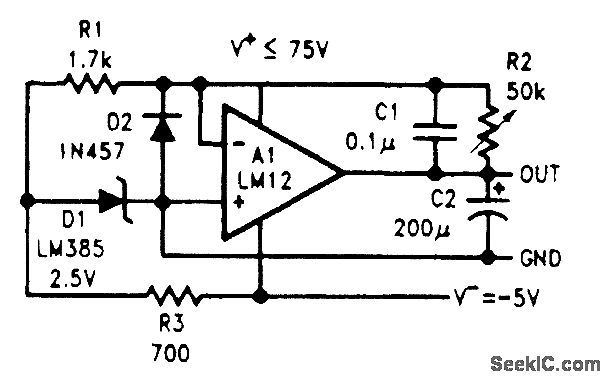 http://www.seekic.com/circuit_diagram/Basic_Circuit/Other_Circuit/POSITIVE_REGULATO_WITH_o_TO_70_V_OUTPUT.html