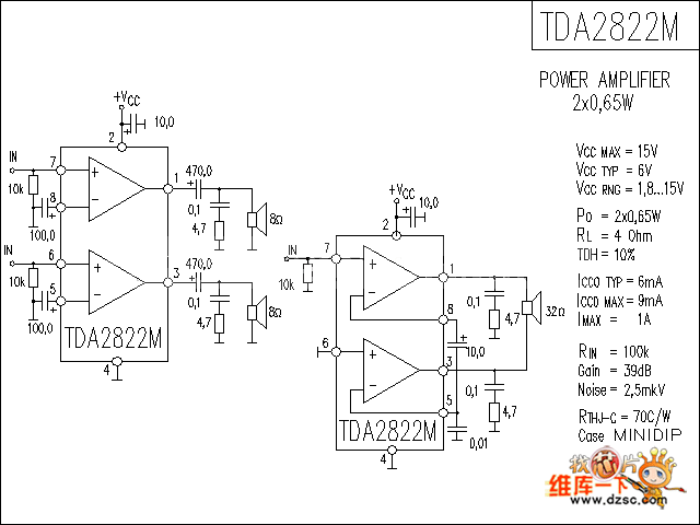 http://www.seekic.com/circuit_diagram/Basic_Circuit/Other_Circuit/Power_Amplifier_Ciecuit_Based_on_TDA2822M.html