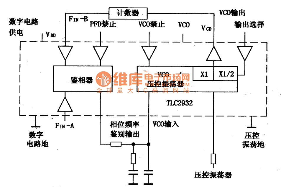 circuits.TLC2932 integrated circuit contains the analog vco and phase detection circuit.Its inside circuit block diagram of intergrated block is shown as picture 1-1.