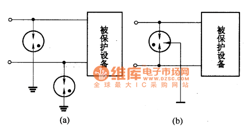 The three-point protection circuit is shown in the picture. When there is a surge voltage flowing into the circuit, the gas discharge tube would guide the surge current to the underground. So that the equipments could get the protective effects.