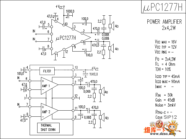http://www.seekic.com/circuit_diagram/Basic_Circuit/Other_Circuit/uPC1277H_Power_Amplifier_Circuit.html