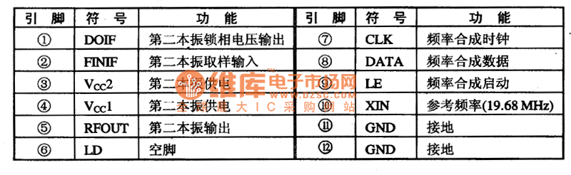 Second,Pins FunctionsPO12404UD integrated circuits uses 12 feet 4 columns encapsulation.And pins functions of frequency synthesis clock circuit and its integrated circuit are shown as table 1.