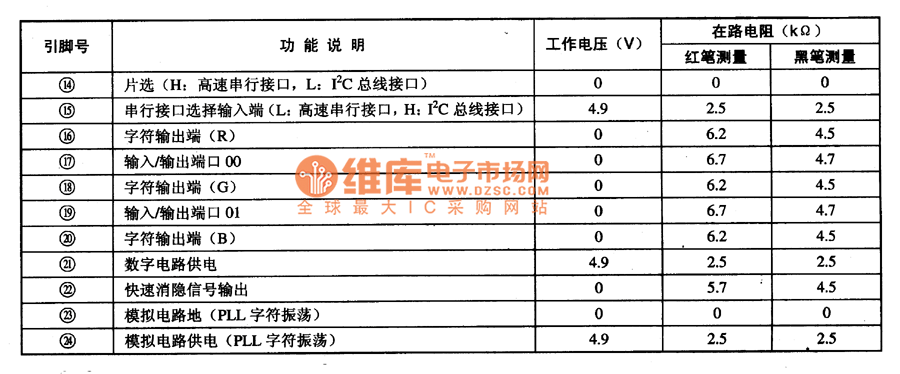 PCA8515 is the character formation integrated circuit produced by Philips, it is widely used in large screen color TV, such as Changhong color TV projection series. 1. Features of functionsPCA8515 ICcontains display with horizontal and vertical positioning pulse processing circuit, the character clock circuit, I2C bus interface circuit, reset circuit, serial interface circuit, and other auxiliary functions circuit. The block diagram of the circuit is shown as the chart. 2. Pin functions and data PCA8515 uses the hundred inserting package with 24 pin in dual rows, the pin functions and data are listed in Table.