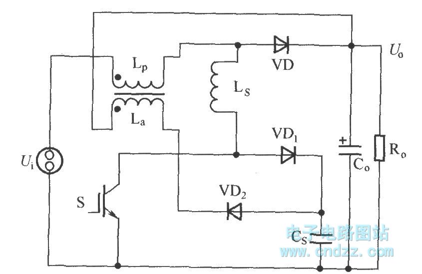 As shown in figure is a passive regenerative soft switch Boost converter, it is the traditional L + RCVD complex buffer circuit's improvement. Its improved place include: Remove the discharge resistance R with input power inductor Lp coupled miniwatt winding La instead of special power inductor L.