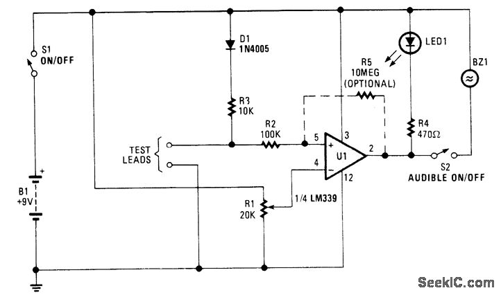 http://www.seekic.com/circuit_diagram/Basic_Circuit/SENSITIVE_CONTINUITY_CHECKER.html