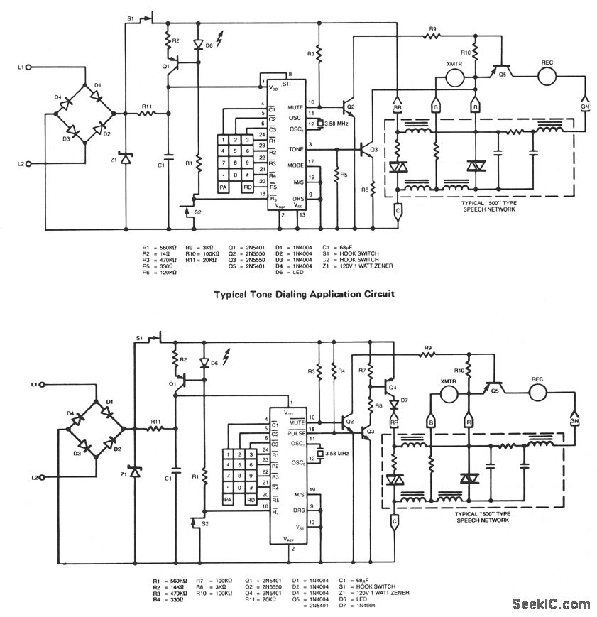 http://www.seekic.com/circuit_diagram/Basic_Circuit/SINGLE_CHIP_PULSE_TONE_DIALER.html