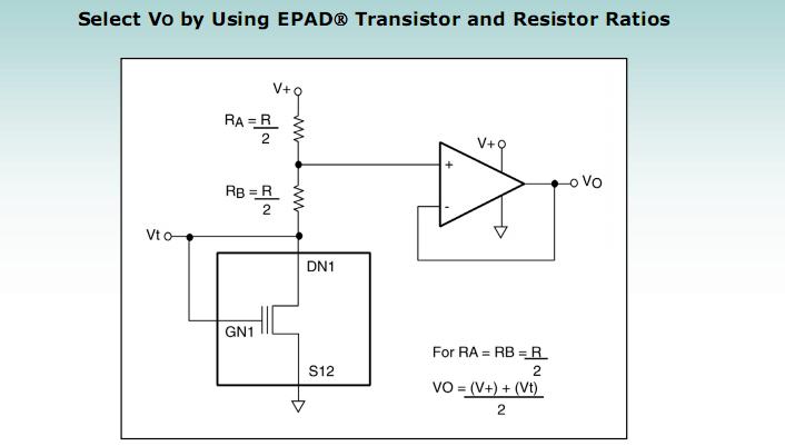 Published:2013/2/24 21:10:00 Author:muriel | Keyword: Select Vo, EPAD Transistor, Resistor Ratios | From:SeekIC