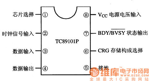 TC89101P is the memory integrated circuit produced by Toshiba, it is widely used in color television sets, air conditioning, audio and other system control circuit. 1. Features of functionsTC891O1P integrated circuit is mainly composed of memory matrix circuit, the selection circuit composed of CRG storage, the register circuit, data input / output interface circuit. 2. Pin functions and data TC89101P IC uses the package with 8 feet in the column, the pin functions are shown in Figure 1, the operating parameters are listed in Table 1.