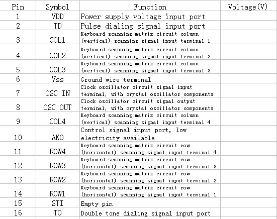 The TCM5089 IC has the pulse / tone dial compatible circuit, key switch signal encode and decode circuit.