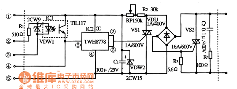 TWH8778 is a power driver switch IC, which is a common component used in many areas of the trigger-driven switch. 1. Features of functionsTWH8778 IC is made by FET and bipolar transistors using hybrid technology, it has the features of low static power consumption and high gain characteristics. The internal circuitincludes short circuit, overvoltage, overheating and other protection circuits, it also can work under poor environment and load conditions, it is small and easy to install. 2. Pin function TWH8778 IC uses single pin package, the pin functions are listed in Table. TWH8778 IC pin function 3. The typical application circuit The factory automatical control switch typical application circuit composed of TWH8778 integrated circuit is shown as the chart. The typical application circuit of TWH8778 integrated circuit