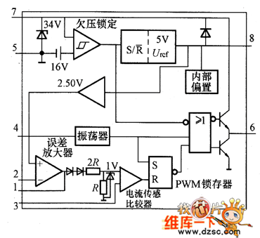 http://www.seekic.com/circuit_diagram/Basic_Circuit/The_Internal_Equivalent_Circuit_Of_UC3842_Switch_Power_Integrated_Controller.html