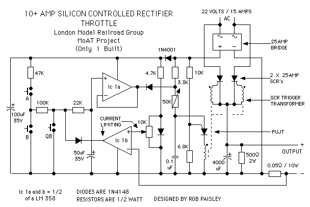 The third schematic is a throttle that was built for the London Model Railroad Group because of a quest for more power (amps) to triple head an all brass 21 hopper coal drag with scratch built Steam locomotives.