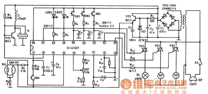 The typical application circuit of LC227 IC is shown as the chart.