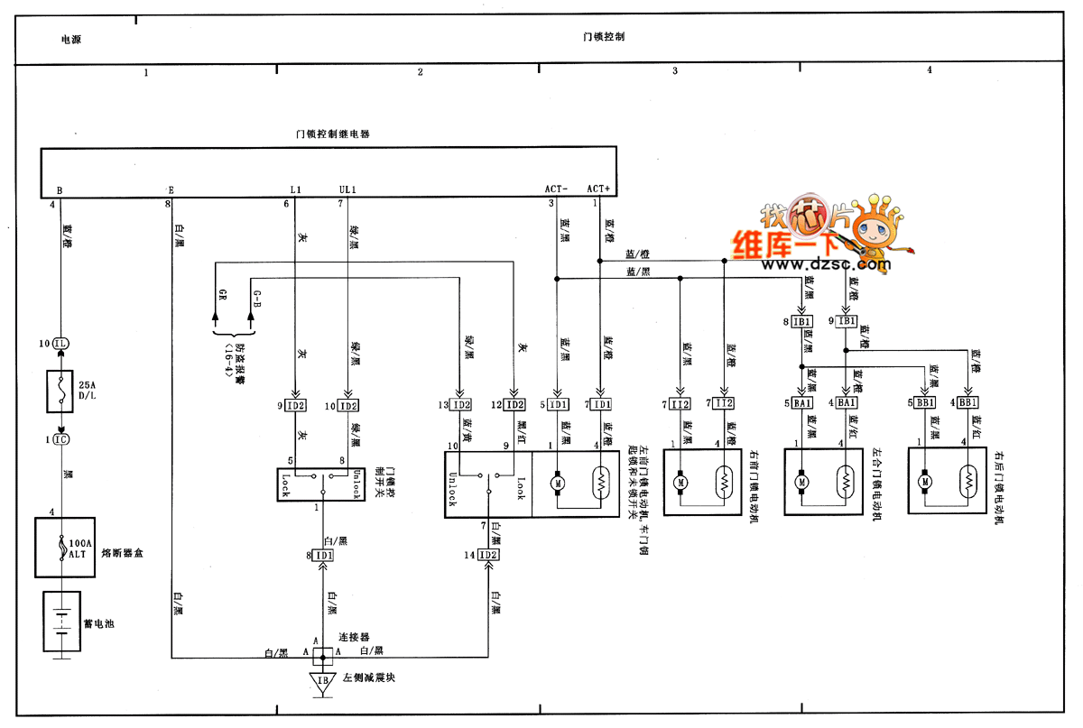 Tianjin VIOS gate lock control circuit diagram, as shown: