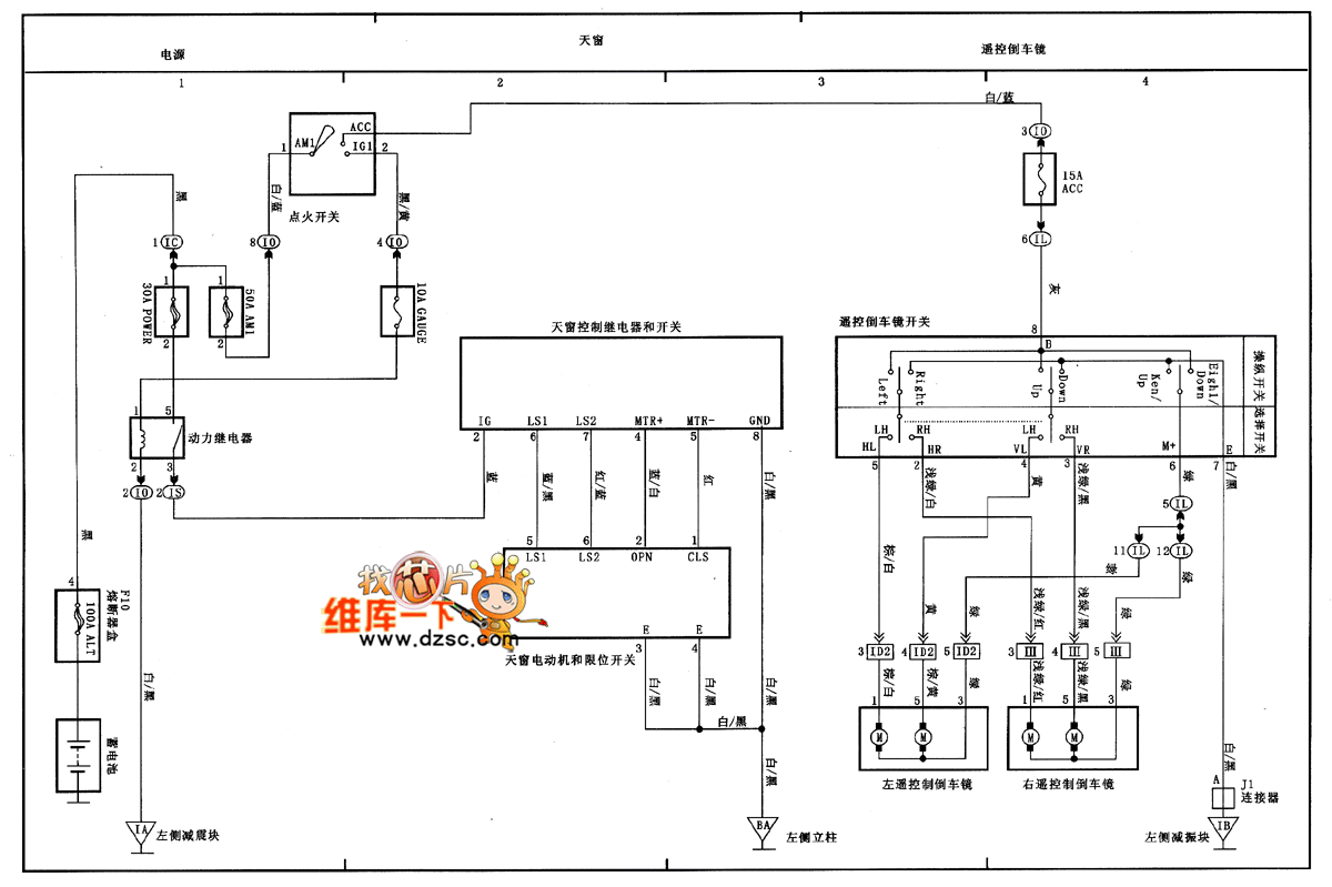 Tianjin VIOS skylight and telecontrol rearview mirror circuit diagram as shown: