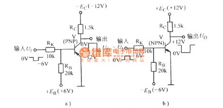 a)shows the PNP transistor inverter.b) shows NPN transistor inverter.