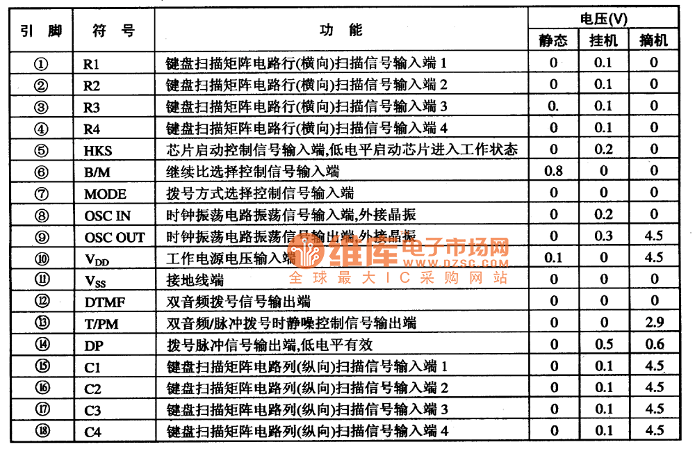 UM91210 integrated circuit contains pulse/double audio frequency compatible dialing, key switch singal encoding and decoding circuit and so on, the integrated circuit's pin function and data are shown in the excel 1-1.