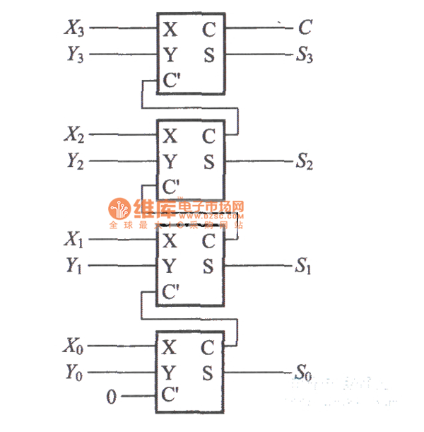 Published:2014/4/24 21:08:00 Author:lynne | Keyword: Use full adder of four addition operation circuit diagram | From:SeekIC