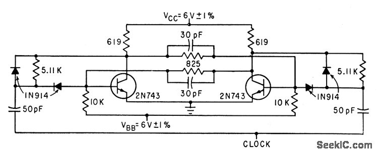 Gives 10-Mc op eration from -55℃ to +125℃, with 3.v dock trigger. Addition of emitter-follower will improve wove form and extend operation to +150℃.-D. Hall, Using Epitaxial Transistors in Switching and R-F Circuits, Electronics, 34:13, p 52-53.