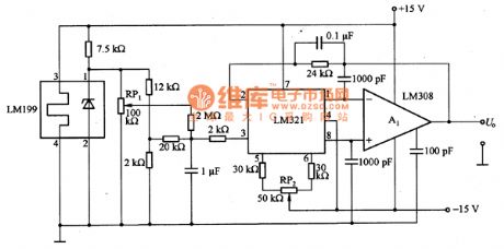 The picture is measurement standard battery benchmark voltage source circuit of LM199 and the benchmark source is 1.01V.The circuit consists of LM321 and LM308 etc. and disorders voltage is below 1μV/℃. The output voltage adjustment RP1 and temperature drift adjustable RP2 need to choose potentiometer with little temperature coefficient ,which does not affect the circuit. (View)
