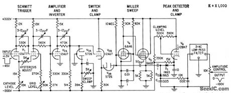 Uses two cascaded complementary stages in which tunnel diodes are used with transistors. Takes +10V input pulse.- Transistor Manual, Seventh Edition, General Electric Co. 1964, p 369. (View)