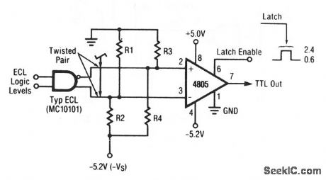 This circuit uses an RC4508 comparator as an ECL-to-TTL translator. Raytheon Linear Integrated Circuits, 1989, p. 5-12. (View)