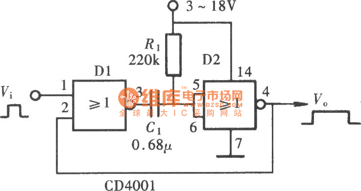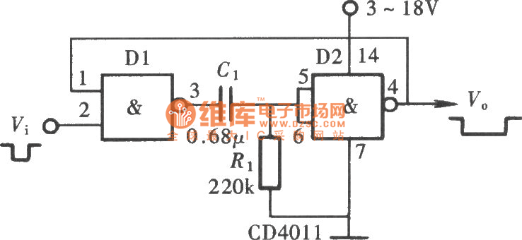 Published:2011/7/22 3:01:00 Author:chopper | Keyword: monostable trigger, gate circuit | From:SeekIC