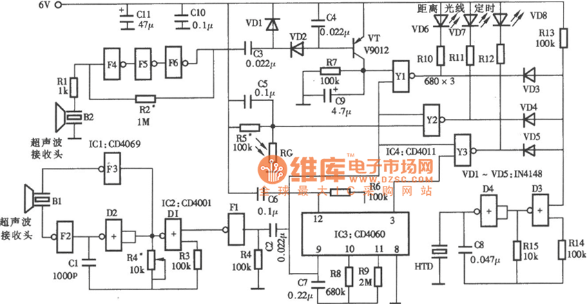 http://www.seekic.com/circuit_diagram/Basic_Circuit/ultrasonic_eyes_protector_cirucit.html