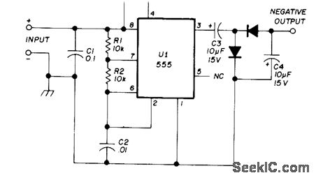 Bipolar inverter and rectifier together provide -11 V from 12-V auto battery for operdting highthreshold MOS logic of portable or automotive equipment. Transistor and diode types are not critical. Multivibrator draws only 1.2 mA from battery on standby and supplies 12 mA from negative output terminal.—B. Fette, Inexpensive Inverters Generate VGG for Portable MOS Applications, EDN|EEE Magazine, Dec.15, 1971, p 51.
