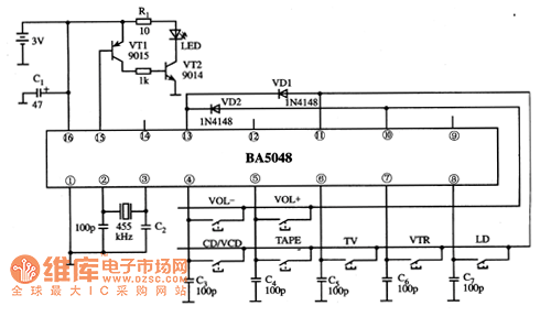 The BA5048 is designed as one kind of multi-channel infrared emission encoding integrated circuit which is produced by the ROHM company, and it can be used in the remote control transmitter of the AV power amplifiers such as the TianYi AD-51OOA power amplifier.