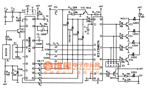 The BA5049 is designed as one kind of multi-channel infrared remote control signal receiving integrated circuit which is produced by the ROHM company, and it can be used in the infrared remote control system of the small home appliances such as the TianYi AD-51OOA power amplifier.