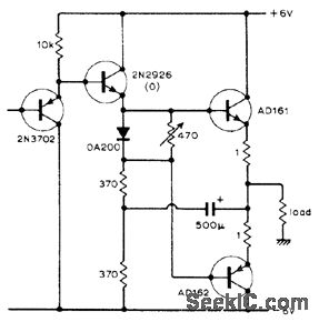 Developed for use in line time-base amplifier of 4-Hz slow-scan TV system. Emitter-follower in driver stage is used with first transistor to match output impedance of UJT sawtooth oscillator. Will drive deflection coils of 17-ineh CRT (coil resistance about 5 ohms).-M. Hadley, Deflection Coil Driver for Slow-Scan Television, Wireless World, March 1974, p. 18.