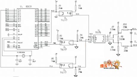 As shown is the monitoring module and rectification module of communication circuit. Optocoupler N9and N452 provide isolation between microprocessor D211 and rectification module, the N9 isisolated the send buffer V15 and V10, the send buffer V15 and V10 are designed for communcationdrive capability of 100 rectification module, N451 is a HG optocoupler buffer, it is receiving the rectification module's signals. (View)