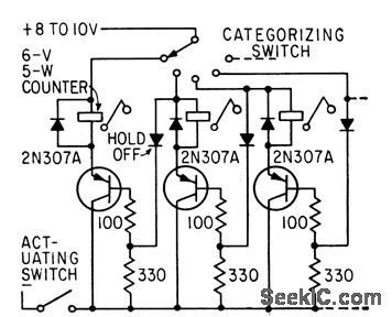 Diodes absorb flyback and prevent duplicate counts when categorized information ;is fed to banks of electromechanical counters.-R. L. lves , Reducing Errors in Category Counters, Electronics, 35:23, p 54-57.