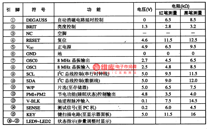 CPU—WT6861/WT62Pl integrated circuit adopts 40-foot DIP, the integrated circuit pin function and data is shown in chart1.