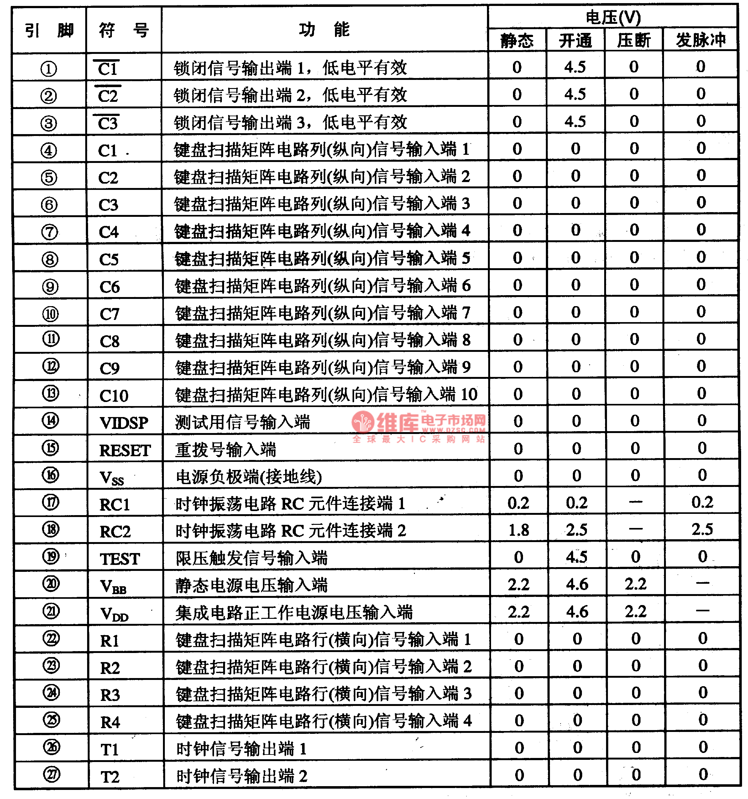HD44801A80 contains sub-circuits of pulse/two-tone coupling with dialing, key switch signal encoding, electrical long-distance call lock, display driven control circuit and other application circuits.