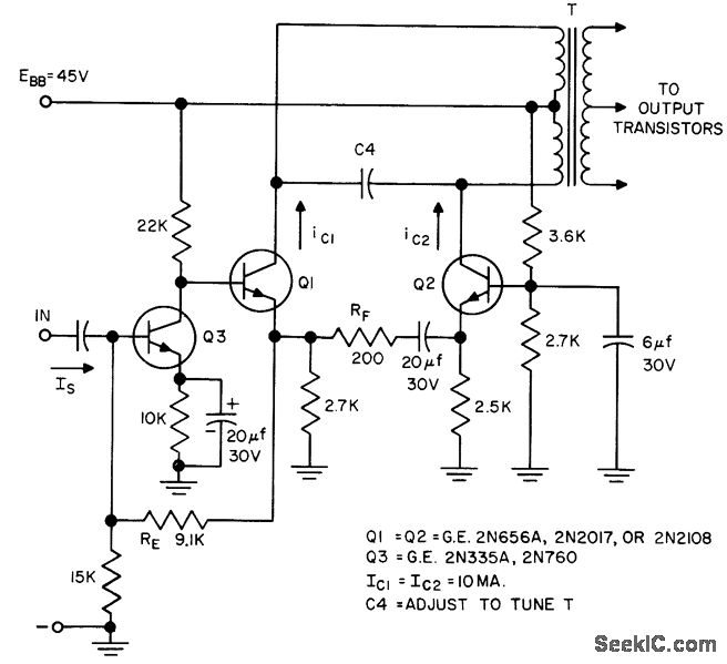 Uses modified long-tail pair to give highly stable gain. Separate emitter resistors improve bias stability. Provides push-pull operation.- Transistor Manual, Seventh Edition, General Electric Co., 1964, p 222.